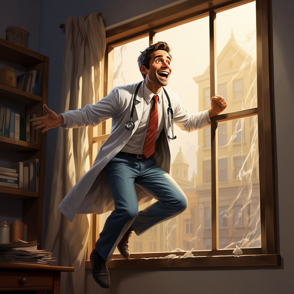 — Спасите! — Витальев высунулся из форточки сильнее, лицо его было белее, чем обычно (сказалась работа при люминесцентных лампах), а халат живописно свисал вниз.