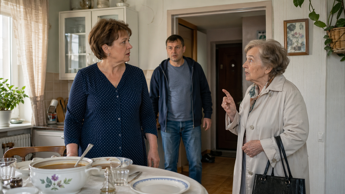 Валентина стояла посреди кухни, пока на плите снова не закипел суп. Пена полезла к крышке, и только тогда она дёрнулась, выругалась вполголоса и сняла кастрюлю. Потом села, положив ладони на колени. Часы тикали. Холодок под мышками становился влажным. И самое обидное было даже не в чужом имени. Самое обидное было в том, как он с ней говорил. Не как сын с матерью. Как взрослый с человеком, которого надо от чего-то отодвинуть.