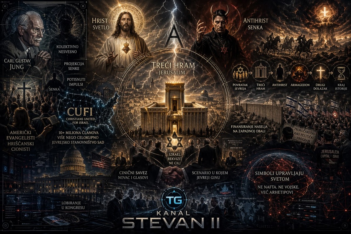 Zapadna civilizacija nije proradila svoju senku, to jest društvo nije iskreno pogledalo svoje mračne strane. I sada pokušava da odigra unutrašnju krizu kao spoljašnji scenario — sa dekoracijama, proročanstvima i političkim partijama. To je veoma skup način da se izbegne samospoznaja. Reč je o desetinama miliona američkih evangelista — hrišćanskih cionista. Njihova najveća organizacija CUFI, koju je osnovao pastor Džon Hagi, ima više od deset miliona članova — više nego celokupno jevrejsko stanovništvo SAD. Sve ih povezuje jedna teološka šema — dispenzacionalizam. Šema izgleda ovako. Jevreji se vraćaju u Izrael — to se već dogodilo. Zatim se gradi Treći Hram na mestu sadašnjih muslimanskih svetinja. Potom dolazi Antihrist, počinje Armagedon, Drugi Hristov dolazak. Jevreji na kraju ili prihvataju Hrista ili ginu. Kraj istorije. Izrael u toj šemi nije vrednost sam po sebi — on je rekvizit. Zato pokret finansira preseljenje Jevreja u Izrael, lobira u Kongresu za proizraelsku politiku i