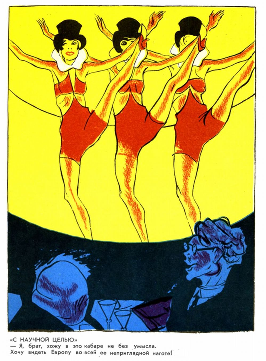 — Я, брат, хожу в это кабаре не без умысла. Хочу видеть Европу во всей её неприглядной наготе!»