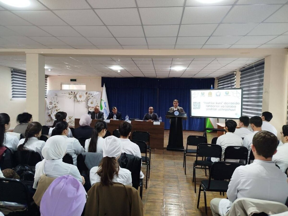 🔺 Toshkent davlat tibbiyot universiteti Chirchiq filialida “Rahbar va yoshlar” uchrashuvi bo‘lib o‘tdi