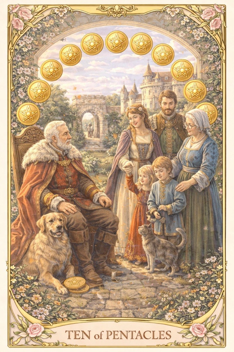 Дата: 24.04.2026 Общее описание дня: Десятка Пентаклей — день устойчивости, завершённости и прочной опоры. Всё, что выстраивалось, даёт результат, на который можно опереться. Это про безопасность, долгосрочные ценности и ощущение «я на своём месте». Как использовать этот день: · Зафиксируйте результат. · Опирайтесь на созданную базу. · Думайте на перспективу. · Укрепляйте стабильность. Мантра на день: «Я нахожусь на прочной основе и доверяю своей устойчивости.» Связь с Четвёркой Кубков (23.04.2026): После внутренней паузы Десятка Пентаклей возвращает ощущение полноты. То, что казалось недостаточным, сегодня раскрывается как ценная и устойчивая основа. 🪙 #картанадня #таро #таропрогноз #тароонлайн #гаданиетаро #таролог #прогнознадень #эзотерика #тарорасклад #дневнойпрогноз