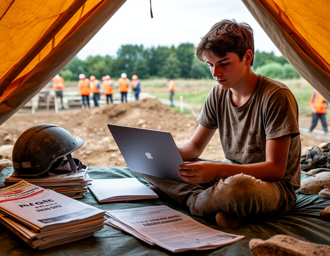 Мы пошли к тому самому месту — к раскопам, только теперь ещё сырым, свежим, без моих брезентов и нивелиров. Планшет я держал в руках. Заряд показывал 62%. Забавно: три дня в XI веке, а ощущение, что я на полевых работах без розетки.