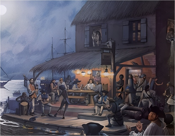 Порт-Ройял, некогда самый богатый и необузданный центр Карибского бассейна, процветал с энергией, которая казалась безграничной. Это было идеальное убежище для тех, кто искал приключений или искал повод для разгула: переполненные таверны, всегда открытые бордели и постоянные визиты таких легендарных личностей, как Черная Борода, Генри Морган, Калико Джек, Мэри Рид и Энн Бонни, которые нашли здесь благодатную почву для бизнеса и разгульной жизни. Когда в 1655 году англичане отвоевали город у испанцев, они превратили его в свободный порт, где не только терпели, но и поощряли пиратов, если те нападали на испанские и французские корабли и преследовали испанские и французские интересы. Это создавало атмосферу хаоса и насилия, но для британской короны это было стратегическим оружием против европейских соперников. Город также славился своим ромом, который считался ужасным, но стал почти легендарным именно из-за своей грубости. Однако с 1687 года ситуация изменилась: законы о борьбе с пиратств