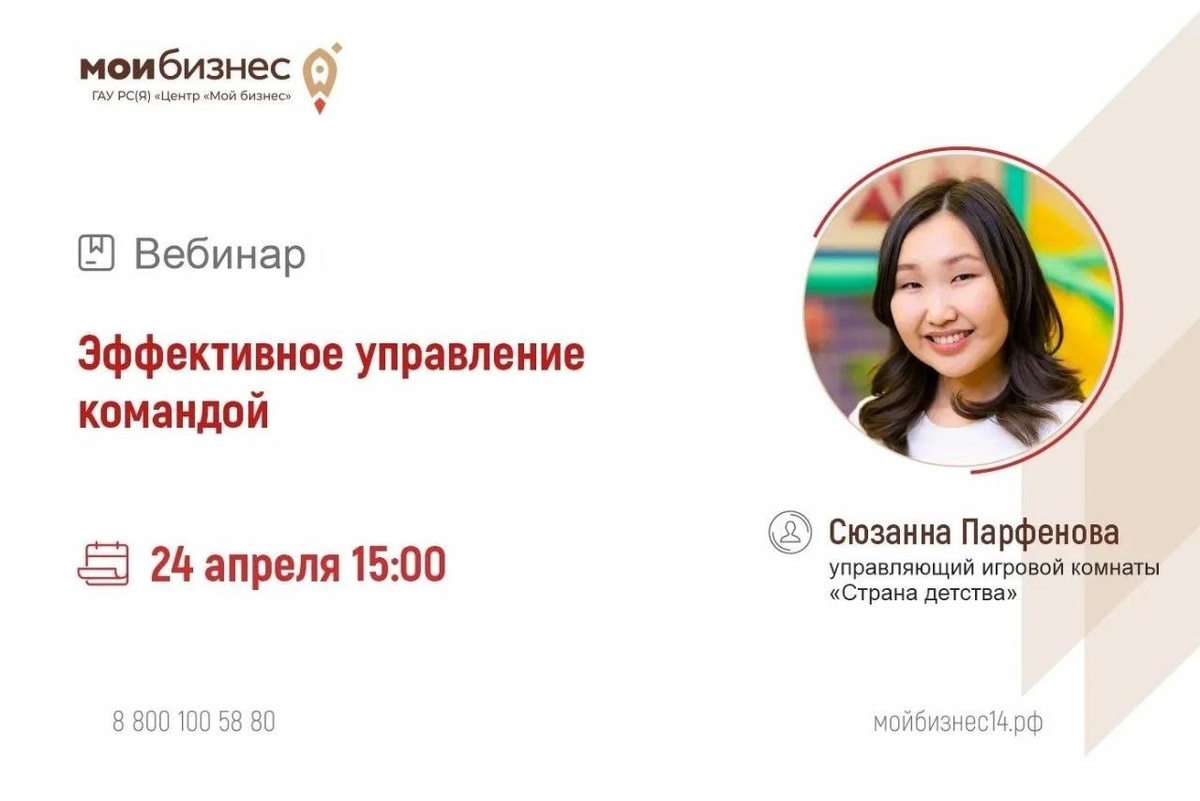 ». ✔️ Вебинар «Эффективное управление командой» 🎙Спикер: Сюзанна Парфенова, управляющий игровой комнаты «Страна детства» (Kinderland) ⏰Время: 15:00 🔗Ссылка для регистрации: https://forms.yandex.ru/u/69e5861c1f1eb504c68e5316 Развивайте бизнес с нами! @moibizsakha