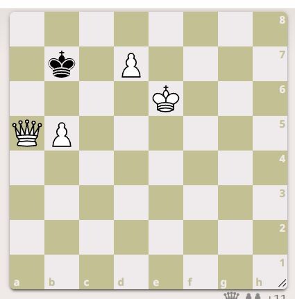 У белых две пешки, одной пешке 1 ход до ферзя.