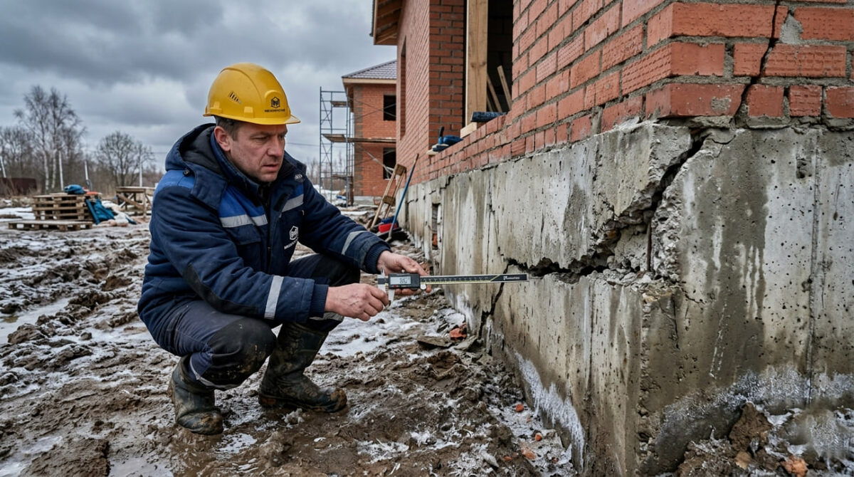 Первая зима после завершения коробки проходит спокойно, потому что грунт ещё не успел набрать влагу. Вторая зима, особенно если она снежная и влажная, уже даёт первые подвижки. Трещины в цоколе шириной полмиллиметра, на которые никто не обращает внимания. Третья и четвёртая зимы развивают картину. К пятому сезону появляется диагональ на фасаде, окна перестают закрываться, а в углу дома виден явный перекос. Ремонт такого фундамента обходится в сумму, сопоставимую со стоимостью коробки дома, и часто проще снести постройку до основания, чем восстанавливать.