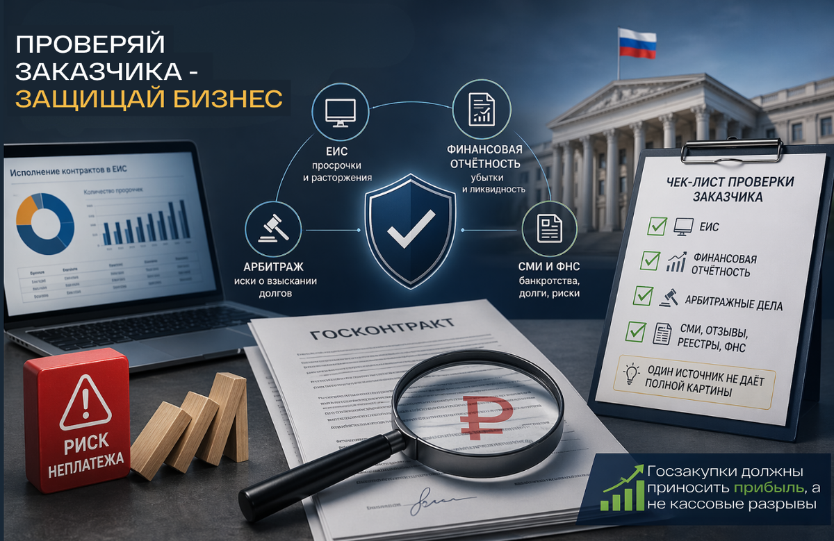 Участие в закупках по 44-ФЗ и 223-ФЗ открывает доступ к крупным контрактам, но несёт ключевой риск: несвоевременную или неполную оплату. Даже при идеальном соблюдении условий поставщик может столкнуться с задержками платежей, критичными для бизнеса. Решение — превентивная оценка платежеспособности заказчика на этапе подготовки заявки. 🔍 Комплексный подход: как принимать решение