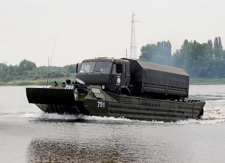 Как происходит погрузка? Это отдельный вид искусства. Сзади опускается аппарель — мощная стальная рампа с гидравлическим приводом. Водитель грузовика просто заезжает внутрь, как в гараж. На суше ПТС-2 может перевозить 5 тонн груза. Но стоит ему почувствовать под килем воду, как грузоподъемность магическим образом возрастает до 12 тонн.