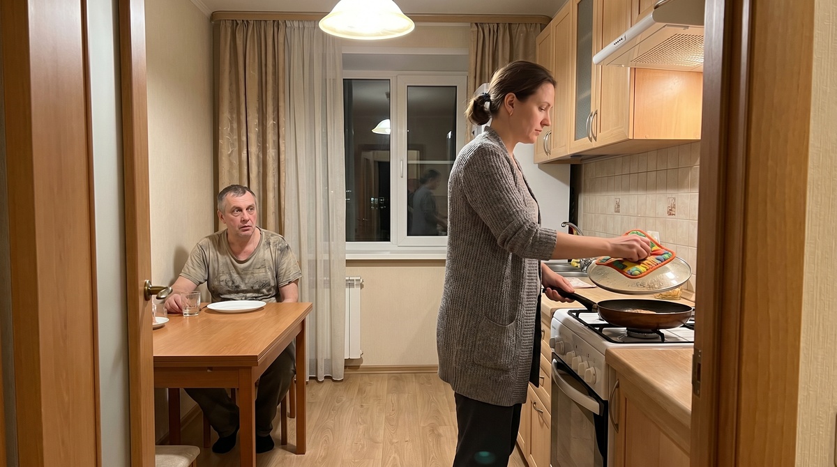 Гриша медленно опустился обратно на табурет. Лицо его пошло красными пятнами, а взгляд заметался между пустой тарелкой и невозмутимой женой.