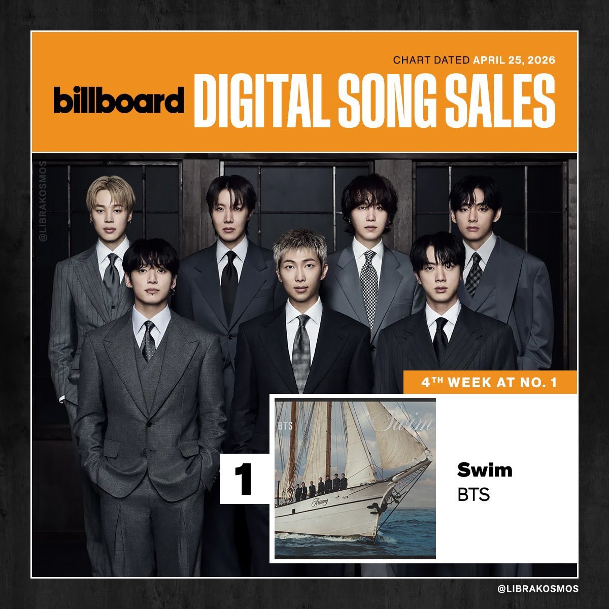 🍊 "Swim" остаётся на 1-м месте четвёртую неделю подряд в чарте Billboard U.S. Digital Song Sales!