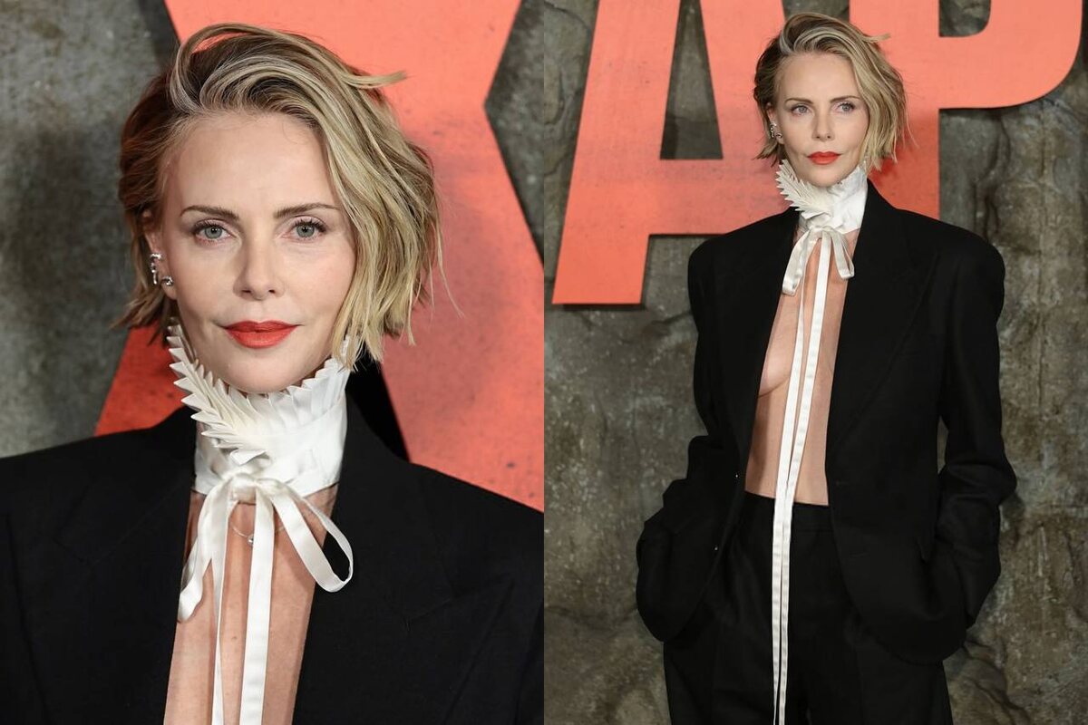 22 апреля, Нью-Йорк, кинотеатр Paris Theatre. Шарлиз Терон выходит на красную дорожку премьеры триллера Netflix «Вершина» в костюме Dior Men Fall 2026, застёгнутом ровно на ноль пуговиц. Под пиджаком нет ничего, кроме уверенности и безупречного двустороннего скотча.