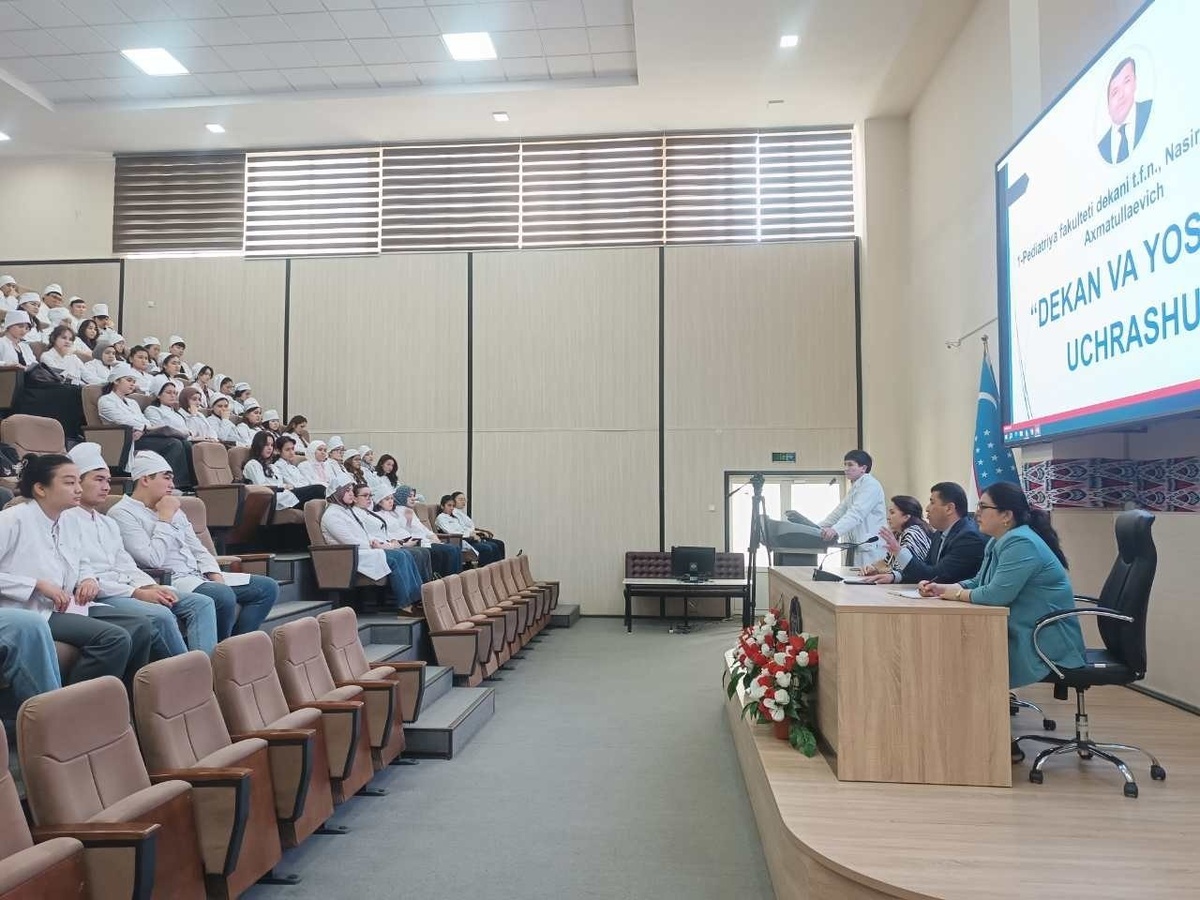 etildi. 🔺Uchrashuv jarayonida 1-Pediatriya fakultet dekani A.A.Nasirov fakultet bosh tyutori SH.SH.Xidirova fakultet xotin-qizlar boʻyicha dekan maslahatchisi Usta-Azizova D.A. talabalar bilan samimiy suhbat olib bordi. 🔺Uchrashuvda quyidagi masalalar muhokama qilindi, Talabalar uchun yaratilayotgan sharoitlar, Ta’lim sifatini oshirish yo‘llari, Yoshlarning bo‘sh vaqtini mazmunli tashkil etish, Sog‘lom turmush tarzini targ‘ib qilish, Talabalar o‘zlarini qiziqtirgan savollar bilan murojaat qilib, taklif va tashabbuslarini bildirishdi. Dekan esa har bir murojaatga alohida e’tibor qaratib, amaliy tavsiyalar berdi. ✈️Ushbu uchrashuv yoshlarning ijtimoiy faolligini oshirish, mas’uliyat hissini mustahkamlash, kelajakdagi kasbiy faoliyatiga ongli yondashuvini shakllantirish kabi muhim jihatlariga alohida e’tibor qaratildi. ✈️Mazkur uchrashuv yoshlar bilan ochiq muloqot qilish, ularning fikr-mulohazalarini tinglash hamda talabalarning ta’lim jarayonidagi faolligini oshirish maqsadida o‘