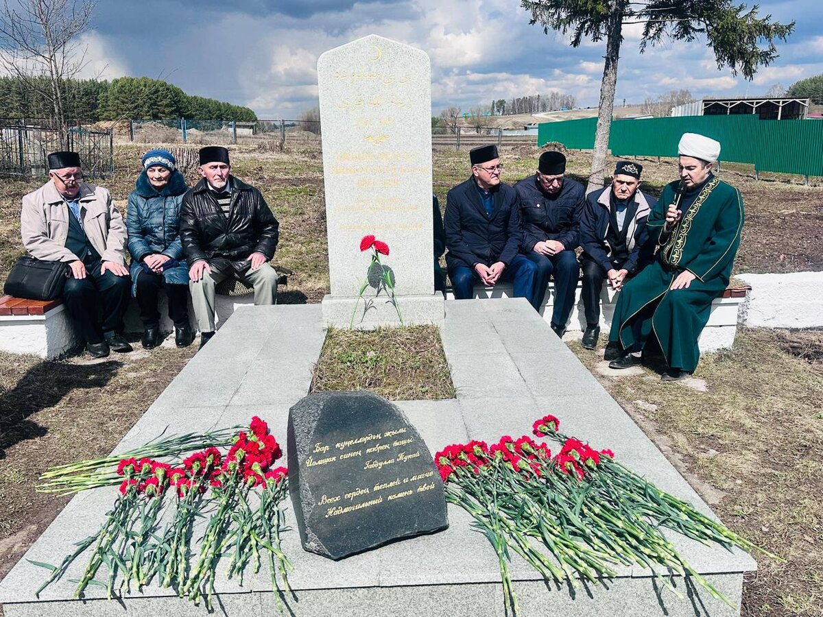 Башкаладан кайткан мәртәбәле кунаклар Сосна Пүчинкәсе авылы зиратында шагыйрьнең әнисе Бибимәмдүдә абыстай каберенә чәчәкләр салдылар.
