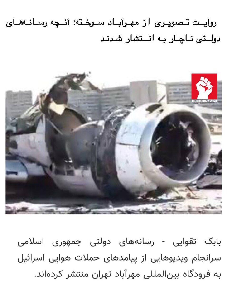 🛫💥 Аналитик Бабек Тагваи сообщил, что иранские госСМИ опубликовали видео с последствиями авиаударов по международному аэропорту Мехрабад в Тегеране. На кадрах — сгоревшие и уничтоженные самолёты, а также серьёзные повреждения инфраструктуры. Подпишитесь на канал В этом посте есть большое видео, которое не загрузилось в Дзен. Откройте оригинал поста в телеграме, чтобы его посмотреть