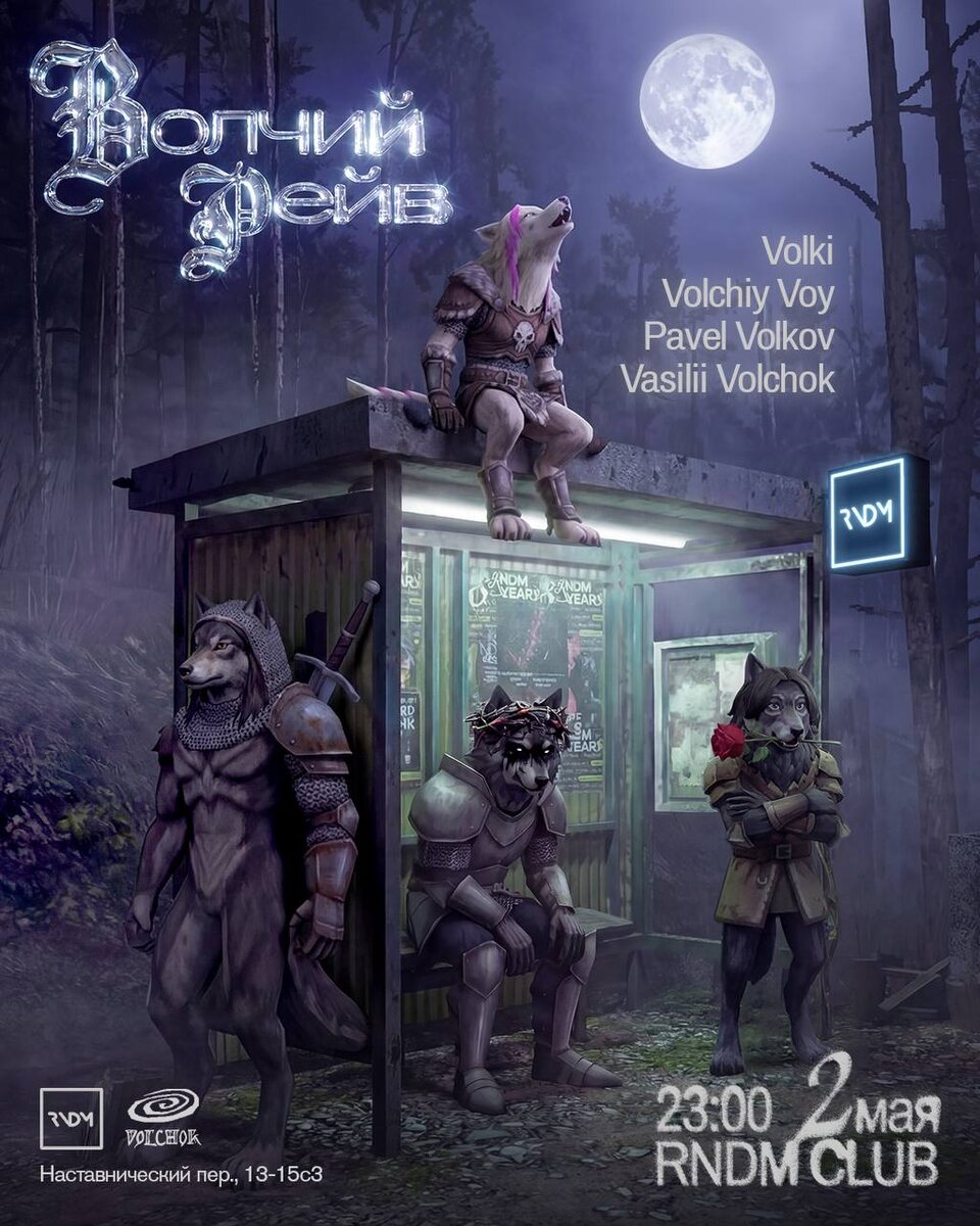 В первый день убывающей луны на самую нетривиальную коллаборационную вечеринку. Начнём с лайва Volki, послушаем специальный сет с волчьими завываниями от Василия Волчка, растанцуемся под индастриал и транс Павла Волкова, а дальше уйдём в полный хард под Volchiy Voy — до последнего устоявшего на лапах. Билеты для ранних пташек