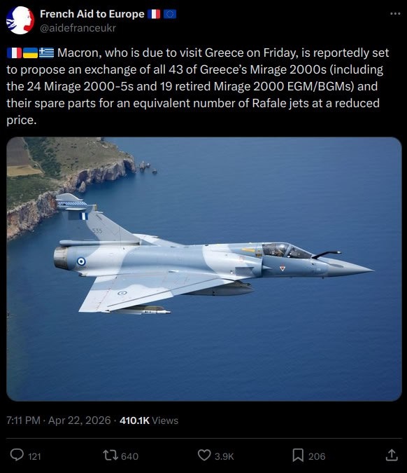 Игра в имитацию продолжается ► Макрон предложил Греции скидку при передачи ВСУ всех 43 уже морально устаревших греческих истребителей Mirage 2000 ► В целом, для Греции сделка можно сказать выгодна, ведь из 43 самолетов эксплуатируются лишь 24 Mirage 2000-5, а более старые 19 Mirage 2000EGM/BGM уже выведены из эксплуатации - и тут вот можно поменять их на чуть более современные Рафали со скидкой ⚠️ Ранее мы уже отмечали почему Mirage 2000 представляет из себя лишь имитацию помощи, отметим лишь его ключевые проблемы: ➡️Поставка Mirage 2000 создает параллельную и полностью отличную от F-16 цепочку поставок - для обслуживания французских машин нужны другие запчасти, инструменты и специфически обученный техперсонал, что перегружает и без того сложную логистику Украины. ➡️Греческий флот Mirage состоит из двух разных версий "Миражей" - старые модели практически бесполезны в современном воздушном бою против Су-30СМ и Су-35С, так как не имеют современных радаров и ракет большой дальност
