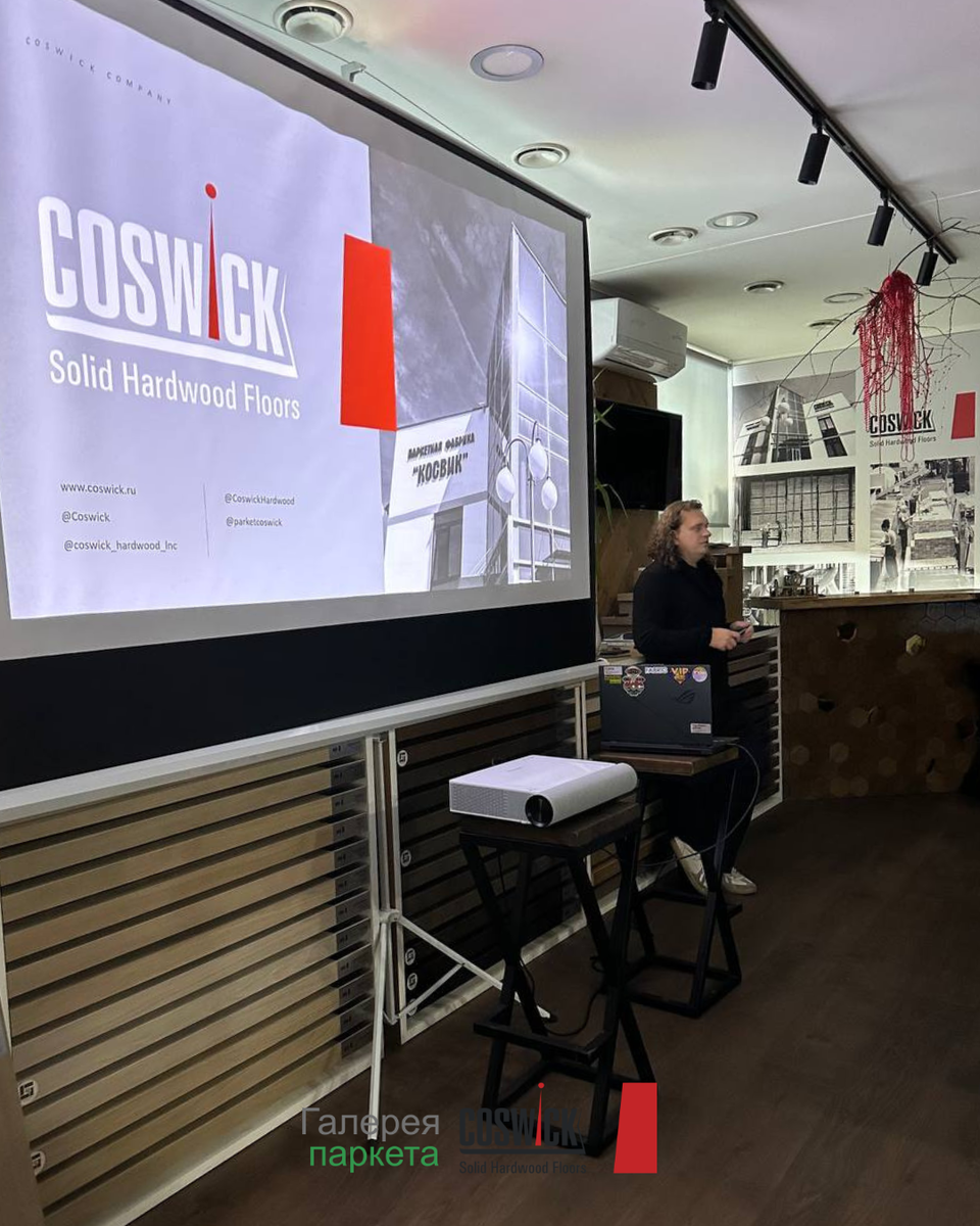 Моносалон Coswick — это единственный официальный представитель фабрики Coswick в Красноярске, пространство, где паркет рассматривают как часть архитектуры интерьера, а не просто отделочный материал.