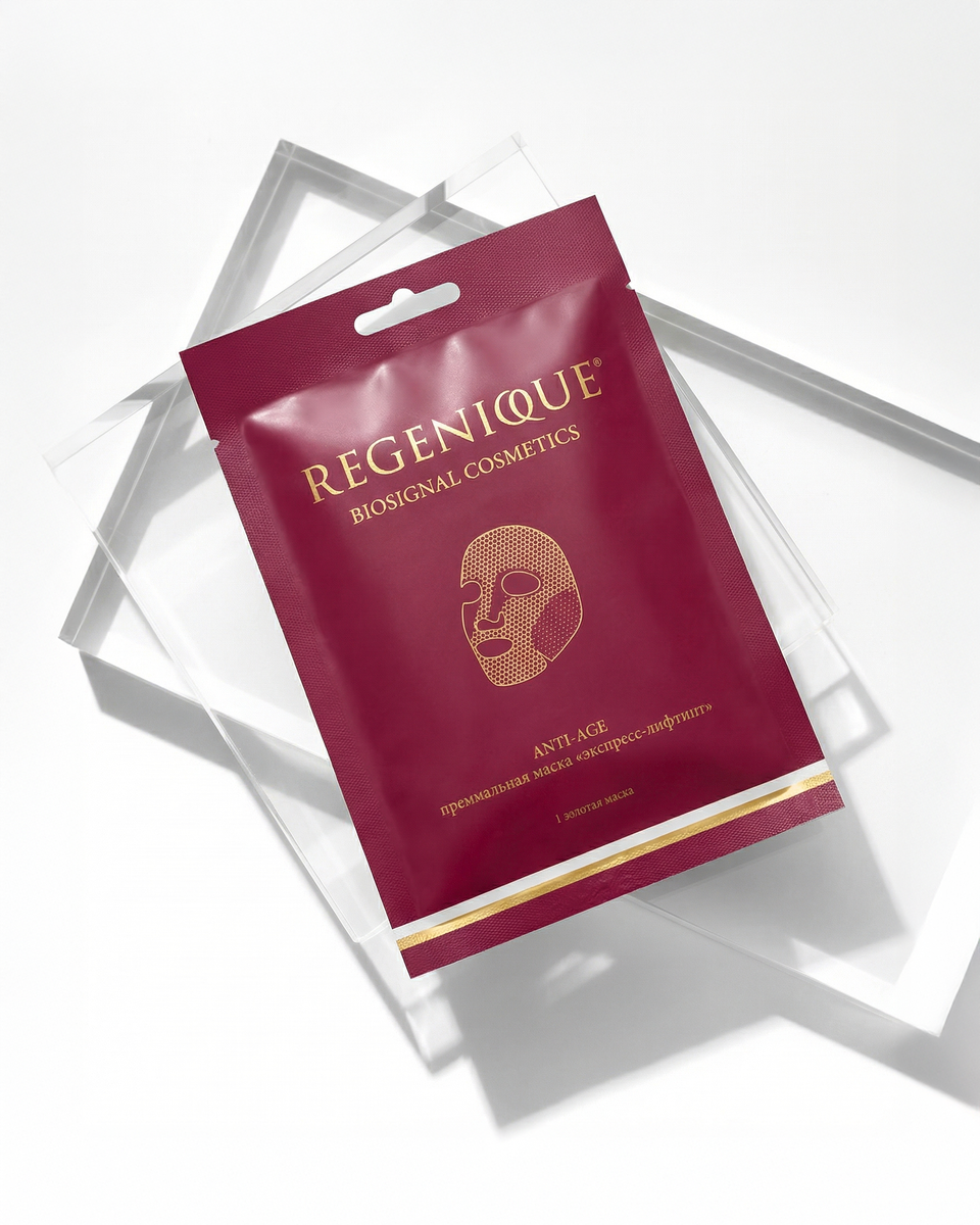 Пока большинство масок просто увлажняют поверхность, золотая маска REGENIQUE® работает по-другому: она несёт в кожу биосигналы — те самые молекулы, которыми клетки «разговаривают» между собой. ЗАЧЕМ ВООБЩЕ НУЖНА МАСКА ДЛЯ ЛИЦА? После 25 лет кожа начинает вырабатывать меньше коллагена, хуже удерживает влагу и медленнее восстанавливается. Ежедневный крем — это хорошо, но его возможности ограничены: он работает в основном на поверхности. Маска — это концентрированный «удар» полезными веществами. За 20 минут плотного контакта с кожей она успевает доставить активные компоненты туда, где они действительно нужны. Но не все маски одинаковы. Обычная тканевая маска из аптеки и маска с биосигнальными молекулами — это как обычный чай и эспрессо. Разная концентрация, разная глубина действия, разный результат. ЧТО ТАКОЕ ЭКЗОСОМЫ И ПОЧЕМУ О НИХ ГОВОРИТ ВЕСЬ БЬЮТИ-МИР Экзосомы — это крошечные «пузырьки», которые клетки отправляют друг другу как письма. Внутри — цитокины (молекулы-регуляторы) и факто