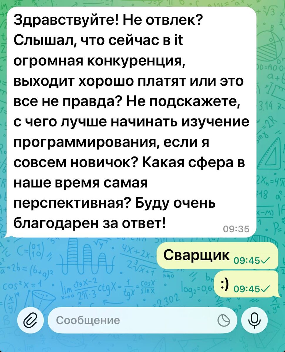 Какая сфера самая перспективная? Сварка :) Не, я серьезно, если неофит думает куда податься, то ИТ нынче не самое шоколадное место, как по мне. 🟪 MAX ❤ TG