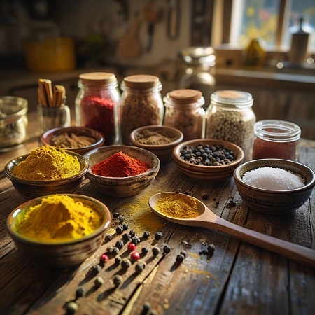 Черный перец. Универсальный солдат. Добавляет легкую остринку и глубину вкуса. Клади его куда угодно — в суп, мясо, овощи, даже в творог. Главное — не пересыпать.
