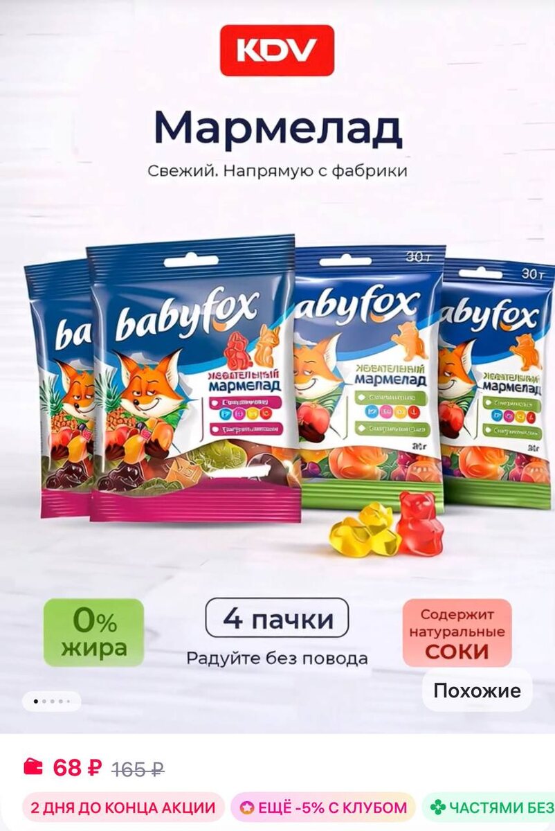 KDV Мармелад жевательный детский Бейбифокс ассорти 4 шт по 30 г