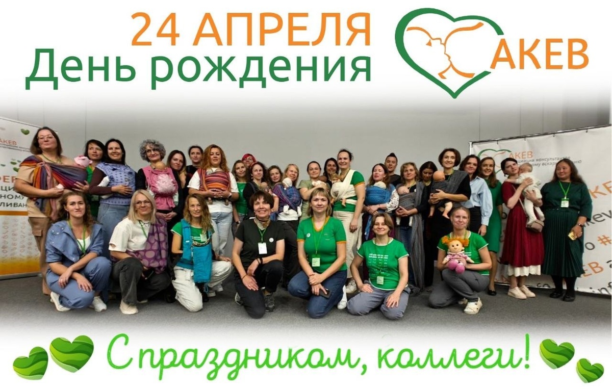 ! 💚💛 Это было первое объединение специалистов по ГВ в России. С тех самых пор 24 апреля мы празднуем день рождения АКЕВ и День консультанта по грудному вскармливанию. 💚❤💛💚❤💛💚❤💛 Вот уже 22 года мы объединяем горящие сердца специалистов, помогающих кормящим мамам! ❤️🔥 Дорогие коллеги, мы поздравляем вас с нашим общим профессиональным праздником! ❤Желаем вам постоянной отдачи от вашей работы! ❤Будьте всегда в ресурсе, наполняйтесь и наполняйте других! ❤Несите свет каждой маме, которая обращается к вам за помощью. ❤Растите вместе с нами, будьте открыты новым знаниям и возможностям! АКЕВ всегда поддержит вас! Вместе мы сила! ✨✨