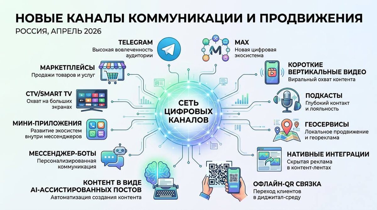 🔮 Новые каналы коммуникации и продвижения в апреле 2026 года в России