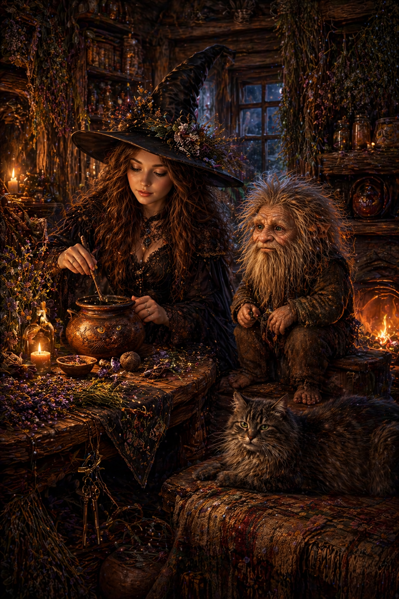 *Её дом пах травами. Сушёными и свежими. Дымом. Воском. Чем-то ещё — не знаю названия, но это запах человека, который живёт осознанно. Не просто существует — именно живёт. Каждую минуту.*