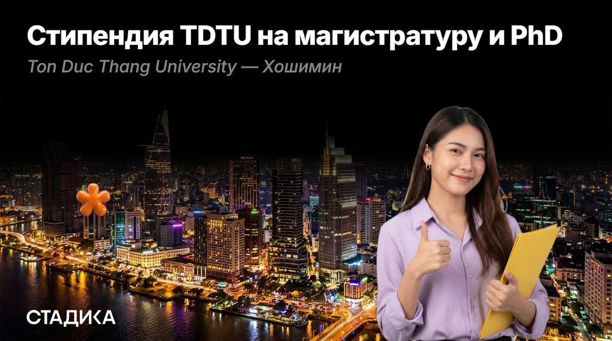 Ton Duc Thang University — Хошимин 🔵 100% оплата обучения 🔵 ежемесячная стипендия на проживание 🔵 магистратура и PhD программы 🔵 топ-университет Вьетнама (QS рейтинг) Иностранные студенты с отличной академической успеваемостью. Нужен английский (IELTS/TOEFL). ⏰ дедлайн — 15 мая 2026 🔗 Подробнее и подача заявки ➡️ Нужна помощь с подачей? Наставники Стадики помогли получить 910+ офферов