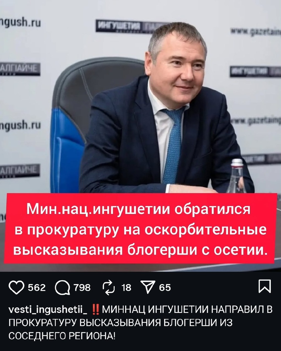 Министерство по делам национальностей Ингушетии направило заявление в прокуратуру в отношении жительницы Осетии из-за её высказываний в
