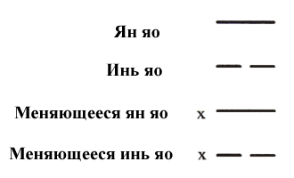 Когда все три монеты выпали орлами или решками, яо называется меняющимся яо и отмечается крестиком (х) рядом с соответствующей линией.