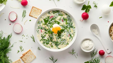 📝 Ингредиенты: (5 порций) - картофель отварной — 3 шт.; - яйца варёные — 2 шт.; - огурцы свежие — 2 шт.; - зелёный лук — 1 пучок; - укроп — 1 пучок; - редис — по желанию (3–4 шт.); - кефир / натуральный йогурт / минеральная вода с лимонным соком — 400–600 мл (для заливки); - сок лимона — 1–2 ст. л. (если используете воду/йогурт); - соль — по вкусу; - перец чёрный молотый — по вкусу. 🔥 Приготовление: Приятного аппетита!!!