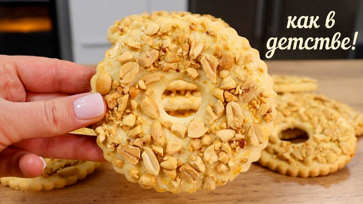 Помните те самые песочные кольца из школьного буфета? Рассыпчатое золотистое тесто, которое буквально тает во рту, и много-много жареного арахиса... Сегодня мы приготовим их дома, но сделаем это даже лучше, чем в детстве. Я поделюсь всеми нюансами идеального песочного теста, которое не ломается при формовке, но остаётся невероятно нежным. Песочное тесто: сливочное масло (мягкое) – 200 г; соль – щепотка; ванилин – щепотка; сахарная пудра – 130 г; яйцо – 1 шт.; разрыхлитель – 1 ч.л. (без горки); мука – 350 г. Дополнительно: арахис (обжаренный) – 120 г; желток – 1 шт.; молоко – 1 ст.л. В глубокую миску кладём 200 г размягчённого сливочного масла, добавляем щепотку соли и щепотку ванилина. Начинаем взбивать миксером на низкой скорости. Постепенно высыпаем 130 г сахарной пудры и продолжаем взбиваем до пышности. Масса должна заметно посветлеть. Теперь разбиваем одно яйцо и ещё раз хорошо взбиваем всю массу до однородности. Высыпаем в масляную смесь 350 г предварительно просеянной муки и 1 ч