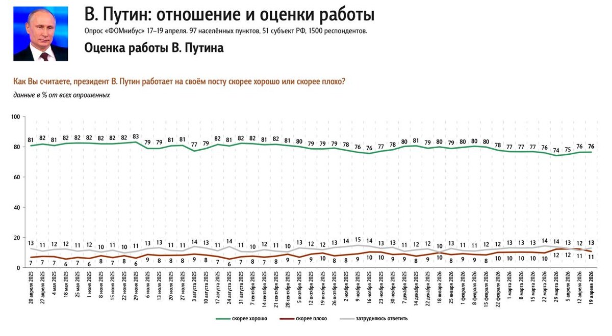 Результаты еженедельного опроса 17–19 апреля 2026 года.