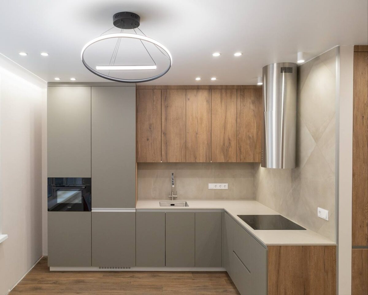 ² реализована нами полностью: от разработки технической документации до готового интерьера ✅ По объекту выполнили полный цикл: планировочные решения, комплект рабочих чертежей, подбор материалов, черновые и отделочные работы, коммуникации, изготовление и монтаж встроенной мебели. Визуализация разрабатывалась точечно: для кухонного гарнитура, чтобы точно проработать узлы и наполнение. ✔️Интерьер собран на сочетании нейтральных фактур и тёплого дерева ✔️В отделке использованы керамогранит, декоративные покрытия и износостойкие решения, рассчитанные на повседневную эксплуатацию ✔️Встроенная мебель выполнена по индивидуальным размерам с учётом фактической геометрии помещения Кухонный гарнитур: — фасады МДФ в матовом исполнении — профильная система открывания Gola — фурнитура DTC — столешница из кварцевого агломерата — фартук — керамогранит Все узлы, примыкания и размеры были заложены на этапе проектирования, поэтому реализация полностью соответствует чертежам 👉🏻 Наша задача в таких