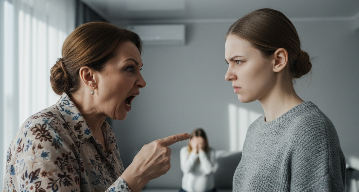 Но свекровь её уже не слышала. Она подошла к Кате и грубо ткнула пальцем в её сторону.