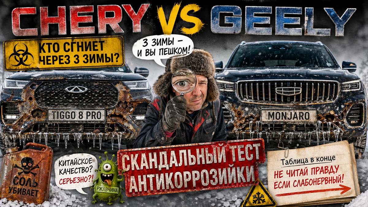 Помните, как в 90-х мы боялись «корейцев»? «Две зимы — и привет, перфорация!». Прошло 30 лет. Теперь на пьедестал закатились китайцы. Только вот незадача: реагенты на наших дорогах стали в три раза злее, а мозг маркетологов Chery и Geely, кажется, всё ещё верит в магию тонкой плёнки.
