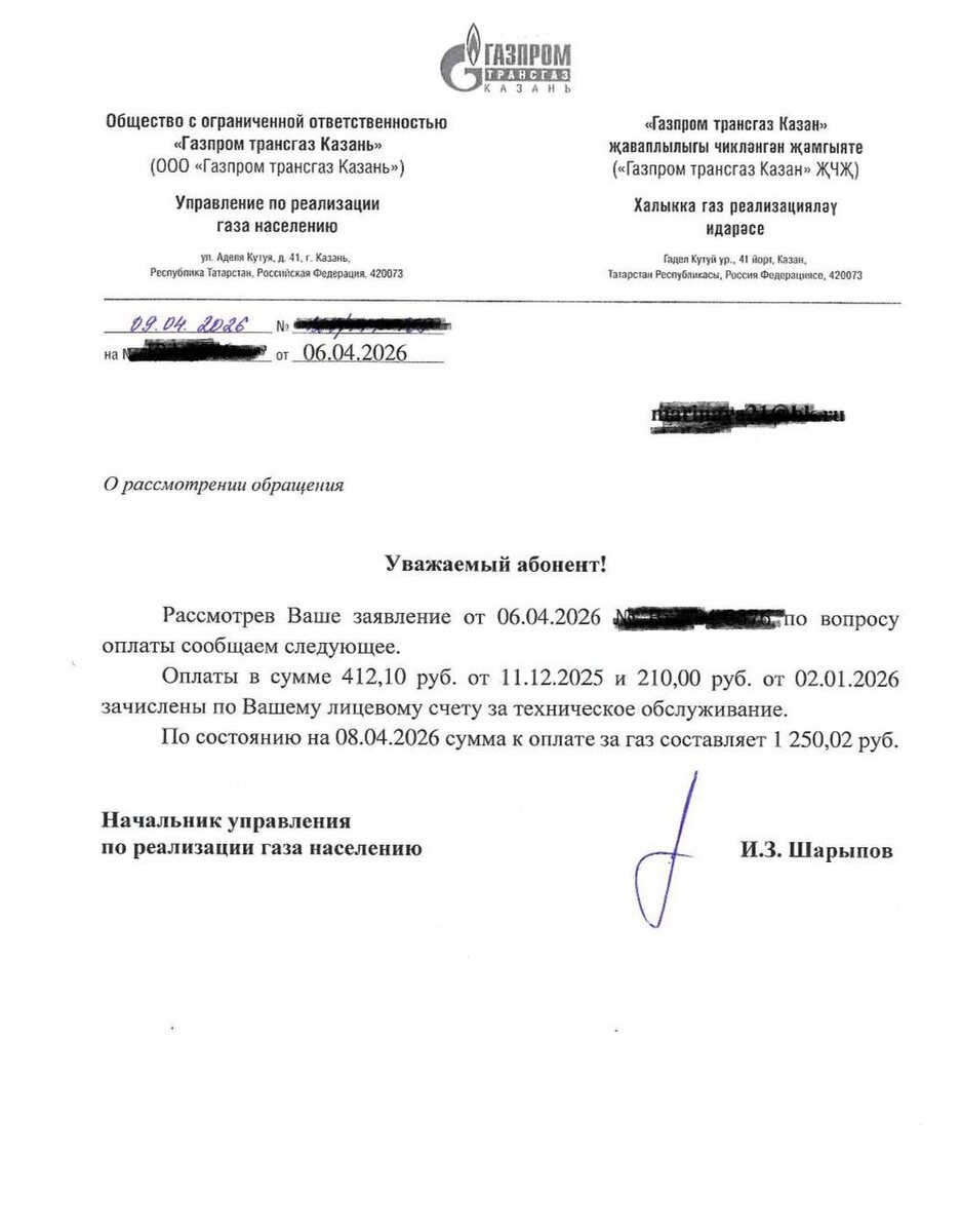 перенаправлены на погашение долга за техобслуживание газового оборудования, которое фактически не проводилось. При этом у неё возник долг перед компанией за газоснабжение, которое она оплатила. «Прошу провести проверку, так как ООО «Газпром трансгаз Казань» занимаются незаконным обогащением денежных средств и мошенническими действиями, перечисляя денежные средства с одного счета на другой, что противоречит и влечет уголовную ответственность. Две разные оплаты и в разные месяца были отправлены за техническое обслуживание, а не по факту за услугу газоснабжение, которое было оплачено и рисуют долги», — возмущается жительница Казани. ⭐️ Прислать новость в TN 📲 TN в MAX