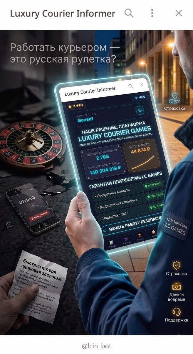 ?» В сети всё чаще пишут о том, что заработки курьеров становятся нестабильными, а штрафы и риски (безопасность на дорогах, блокировки) съедают всю прибыль. Люди боятся выходить на смену без страховки и гарантий, потому что «быстрый доход» превращается в «быструю потерю» здоровья или нервов. ✅ Платформа LCGames — это территория безопасности. Мы не просто даем заказы, мы гарантируем: • Прозрачные выплаты: никаких скрытых комиссий, деньги всегда вовремя. По нажатию одной кнопки. • Страховка: заботимся о безопасности каждого, кто в штате. • Поддержка: 24/7 помогаем решить любые вопросы на маршруте, чтобы ты не остался один на один с проблемой. 🔗 Заполни анкету за 2 минуты и начни зарабатывать безопасно: Зарегистрироваться. Подписаться