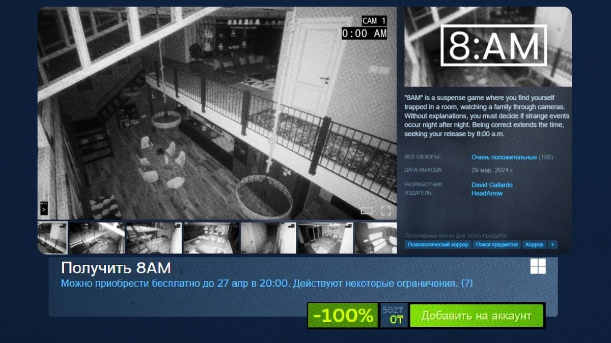 🎉🎉🎉🎉В Steam стартовала раздача хоррора с аномалиями 8AM