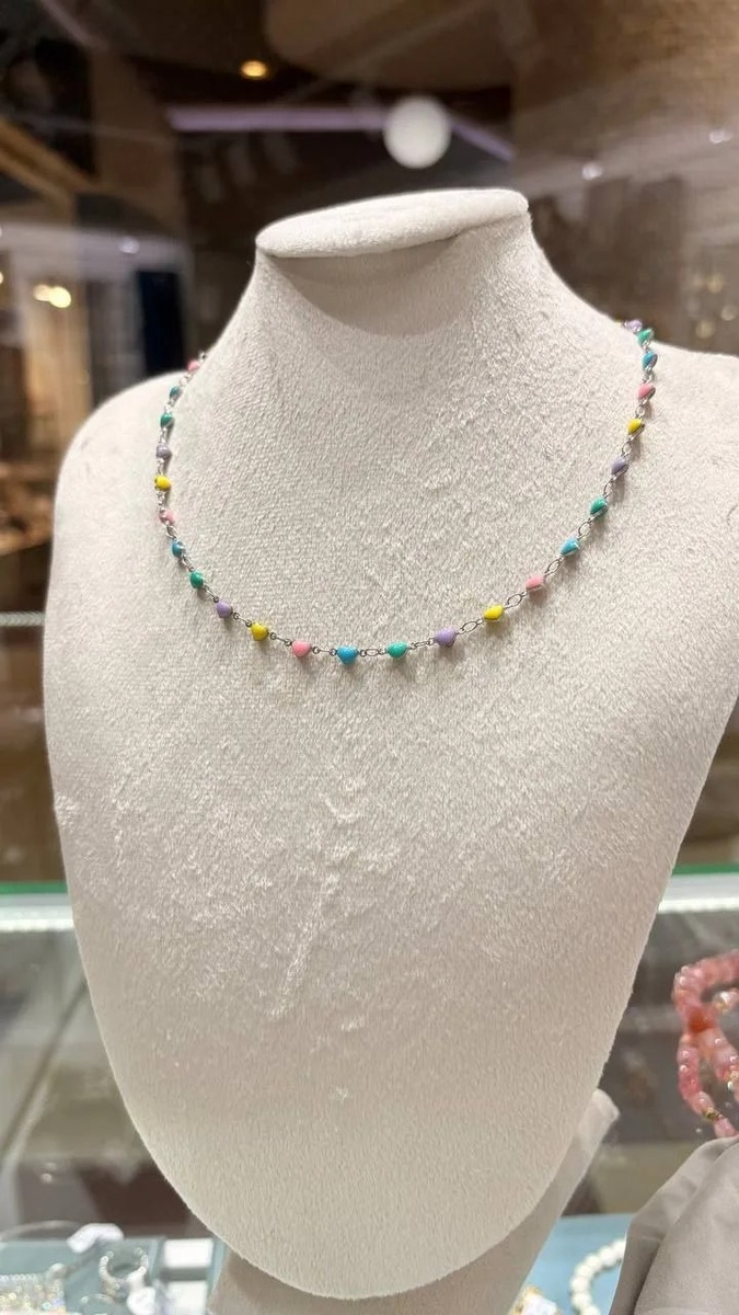 Тоненькие сердечки в эмали разных цветов создали вот такой вот Чокер