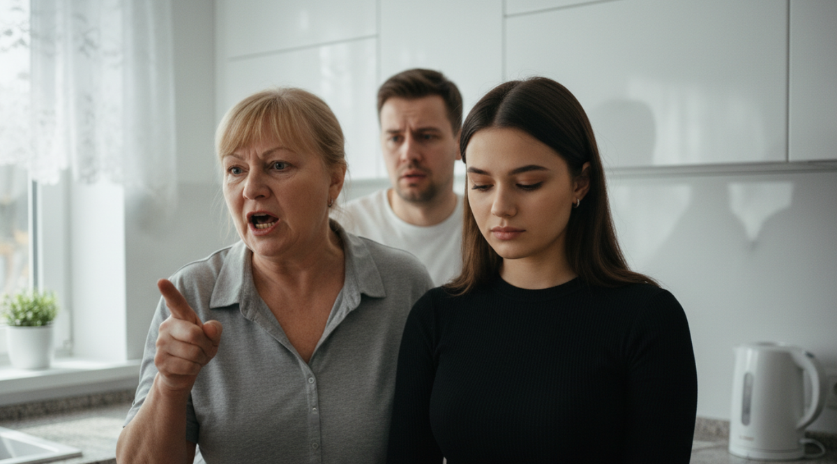 Гнетущая тишина висела в воздухе секунд пять. А затем свекровь резко вскочила со стула. Её лицо исказилось от гнева, а на щеках проступил пунцовый румянец ярости.
