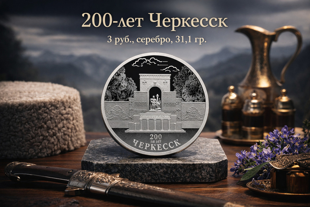 Черкесска» (2025 год) В серии «Города России» появилось важное пополнение. Банк России выпустил памятную монету, посвященную двухвековой истории столицы Карачаево-Черкесской Республики. За 200 лет Черкесск прошел масштабный путь от небольшого пограничного укрепления — станицы Баталпашинской — до современного административного центра. Этот выпуск представляет собой не только историческую ценность для исследователей развития Северного Кавказа, но и может стать статусным памятным подарком. ▫️ Особенности исполнения На оборотной стороне (реверсе) монеты запечатлен памятник воинам, погибшим в годы Великой Отечественной войны, и стена памяти. Особую художественную выразительность композиции придает фон: деревья и облака выполнены с применением современной технологии лазерного матирования. ▫️ Характеристики издания: • Номинал: 3 рубля • Металл: серебро 925 пробы • Чистая масса драгоценного металла: 31,1 г • Диаметр: 39,0 мм • Качество чеканки: «пруф» (высшее качество с зеркальной поверхно