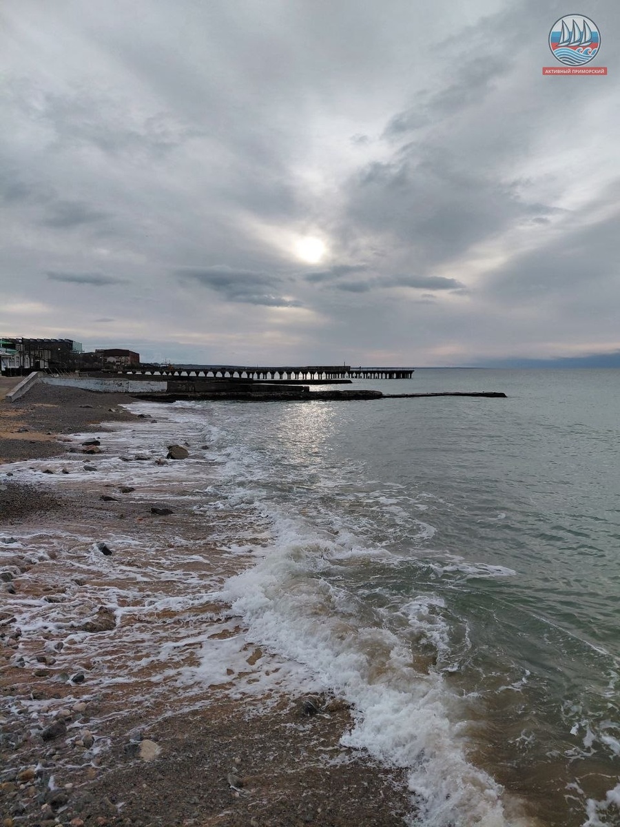 Прохладно и сегодня в Приморском.. Ветер стих. Море слегка волнуется. Все небо затянуто тучами. После ночного дождя всё в лужах. Весна в разгаре...