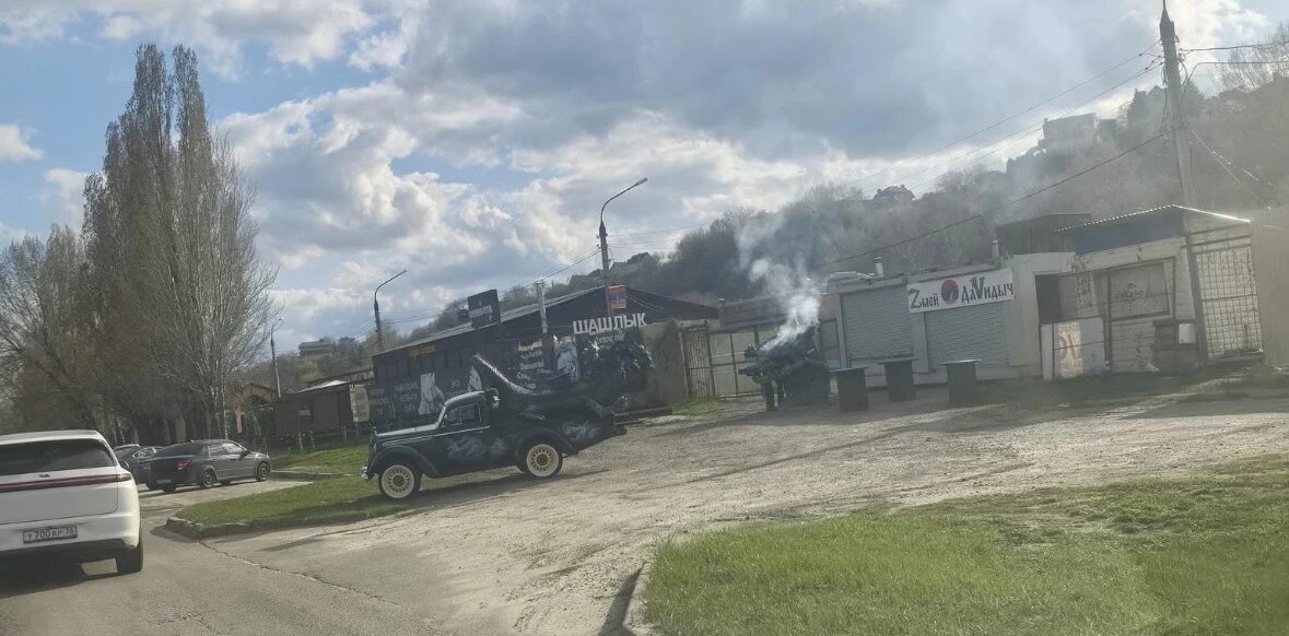 «Общепит находится на муниципальном участке у дороги. Продают без документов. Там вывеска и несколько странных "арт-объектов": мангал в виде головы дракона, машина с драконами и вывеской, плакат с названием "Zмей ДаVыдыч". Используется символика СВО и изображение герба Воронежской области», – сообщают местные жители.