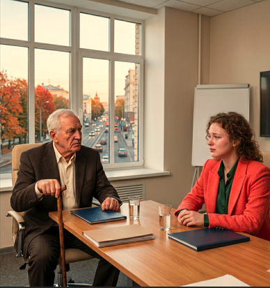 В просторном конференц-зале за длинным дубовым столом сидел Эдуард Маркович. Руслан Эдуардович стоял у окна, нервно поправляя галстук. Рядом с дедом расположился строгий мужчина в очках — явно главный юрист.