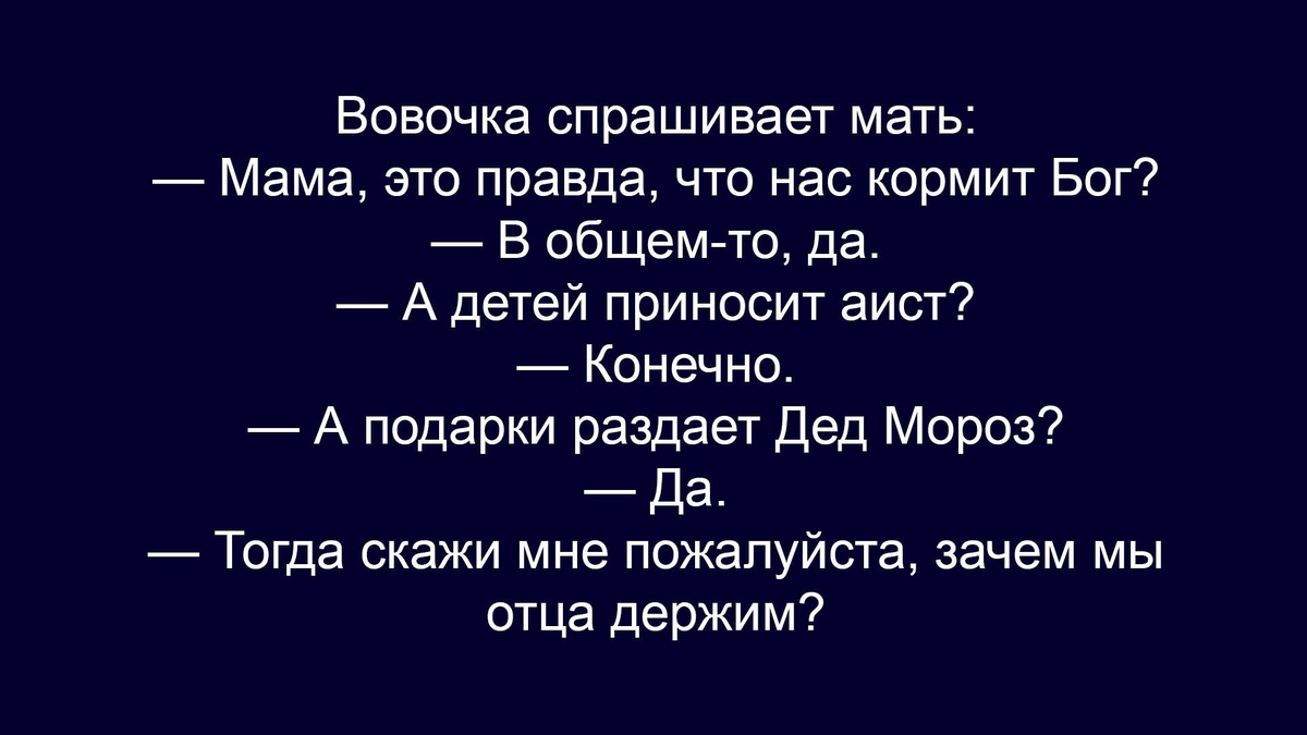 ☺☺☺ Останавливает ГАИшник машину. Водитель: — За что??? ГАИшник: — Вы превысили скорость… Водитель: — Не может быть! Я ехал в соответствии со знаками!!! ГАИшник: — Так там же знак "обгон запрещён"!!! Водитель: — Ну так я и ехал так чтобы никто не обогнал!!! ❗️ ❗️ ❗️ Делитесь своими впечатлениями в комментариях!