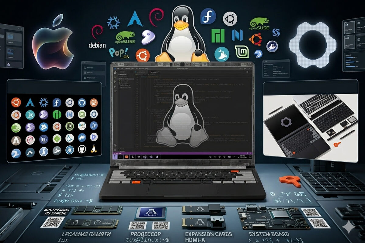 Ключевое идеологическое отличие новой модели - первоочередная ориентация на Linux. Framework подаёт Laptop 13 Pro как свою первую Ubuntu Certified систему. Сертификация означает, что Canonical, компания за Ubuntu, официально протестировала и подтвердила полную совместимость всего железа - от Wi-Fi до аппаратных клавиш, от тачпада до звука. Ничего из коробки не надо допиливать в терминале, искать драйверы или мириться с поломанной работой спящего режима. Помимо Ubuntu, компания спонсирует разработку под Fedora, Bazzite, NixOS, CachyOS, Linux Mint и другие дистрибутивы, давая энтузиастам набор гарантированно рабочих опций.