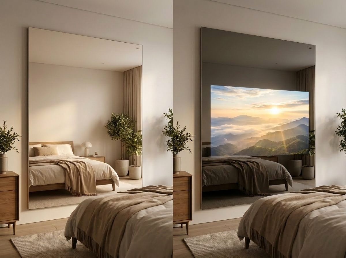 Телевизор, который умеет исчезать: магия зеркала в вашем интерьере